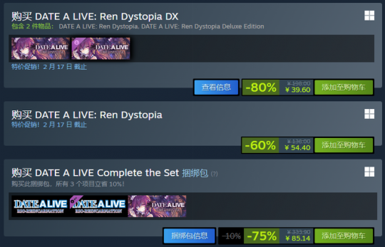 近日,《约会大作战:莲反乌托邦》豪华版疑似出现“临时工事故”,售价39.6元,比标准版54元还便宜。豪华版比标准版多了设定集与两部广播剧,两部广播剧分别是七罪的邂逅、折纸的友谊。 《约会大作战:莲反乌托邦》是一款由CompileHeart开发、于2020年9月24日首发于PS4/PS5,2024年9月6日登陆Steam平台。游戏以“恋爱”和“美少女”为核心元素,融合了剧情互动与轻度战斗系统,是《约会大作战》系列的第四部作品。游戏采用“共通线+个人线”模式,以原创角色“莲”的个人剧情为主线(含NE与TE两条结局),其他角色(如十香、折纸、狂三等)的个人线则为短篇番外,整体剧情长度适中,相当于“正作一卷+番外”。这是一款?为粉丝量身打造的高质量衍生作?,虽非剧情核心,但情感浓度高、制作精良。 |
