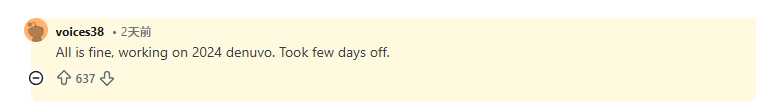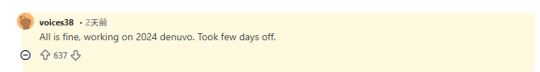 不过,这次似乎虚惊一场:voices38已现身网络,并表示自己一切安好——只是决定稍作休息。目前该黑客正在研究破解2024年版的Denuvo加密保护,但尚未透露下一次破解将在何时发布,以及会是哪款游戏。