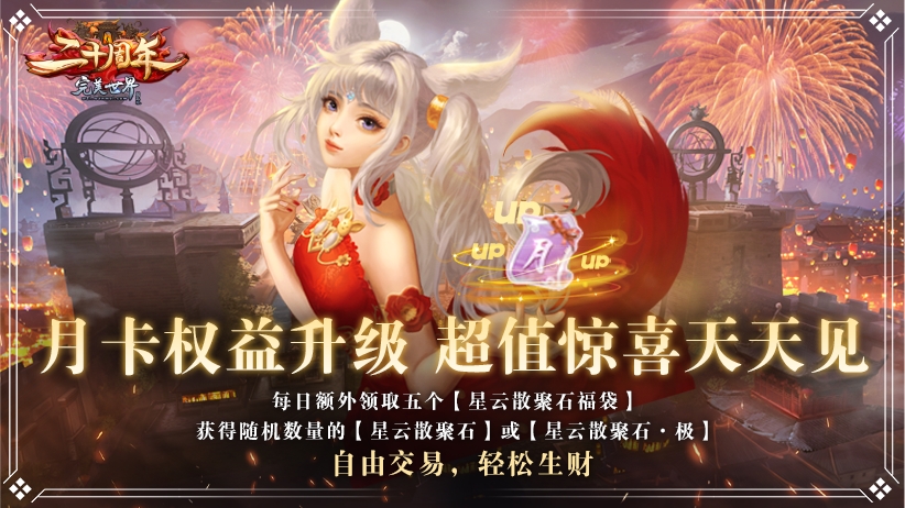 二十年一梦,《完美国际》承载着我们共同走过的山水、共同写下的故事,这份青春记忆,因为你而格外珍贵。 为了纪念这段特别的时光,我们准备了一场贯穿四季的华彩盛典——全年重磅资料片“二十周年”的四个篇章将依次呈现,与你共赴每一程风景。 3月4日,第一篇章“花朝有约”即将温暖启程。而这一次,我们共同的老朋友“水木年华”将与你一起,回到故事开始的地方,赴一场温情、盛大的春日庆典。 【水木年华倾情代言,共赴青春约定】 视频 有些旋律,是青春的代名词,只要在耳边响起,便能将时光拉回那段热血又真挚的年华。 值此繁花佳节,我们荣幸邀请了承载着你我青春记忆的音乐组合——水木年华,成为《完美国际》二十周年资料片代言人。他们的音乐,曾陪伴无数修行者在完美大陆上奔跑、组队、并肩作战,如今岁月流转,那些宝贵的回忆却从未远离。 恰逢春暖,恰好你在,3月4日,让我们与老友重逢、欢聚、再出发! 【有你才完美!珍稀纪念称号全年直赠】 这一年,我们想陪你度过每一个节日,而每一个节日,都有礼物相候。 从“花朝有约”开始,直至年末盛典收官,每一个重要节日与版本节点,修行者登录即可领取充满仪式感的纪念礼物,与我们共同标记春夏秋冬的流转。 同时,也有一份特别的珍贵赠礼藏于其中——二十周年专属成长型称号“有你才完美”将于不同节日登录即赠,逐步进阶、轻松满级,属性丰厚、永久有效! 【全新花朝佳节,在春意中邂逅浪漫】 全新玩法上线,处处可玩、步步有戏! 暗香坡上花色繁茂,诗韵流转,邀你对诗寻花,邂逅一场风雅;桃源镇中“劲舞团”惊喜光临?踏光而舞,让角色随你指尖律动,赢得满堂喝彩!乐园胡闹,小虎快跑!与好友一同在团队赛跑中收获纯粹的欢乐吧~ 这个花朝节,完美大陆温馨有趣,就差一个你! 鲜花培育,打造你的春日花园 温馨精美的“花卉培育”玩法携香而来,修行者可培育属于自己的一园春色,体验小花匠的快乐,超30种绝美花卉等待解锁,让繁花因你而美丽!随着鲜花绽放,更有诸多珍稀道具等你获取! 有奖有成长,花朝节专属称号人人有份 完成花朝任务获取鲜花,轻松积累花神值。当花神值达到指定阶段,即可逐步解锁“二十周年·花朝有约”成长型称号、符纹包(8级)、觅缘石、战灵宝箱:S、神语级仙童晶粹等超豪华奖励。 花神争春,共绽芳华 全新花神榜同步开启,春日荣光,芳华共赏——本次榜上前十名修行者均可获得珍稀奖励,榜首更将独享永久限定图片称号“枕花眠”,让你的名字绽放在完美大陆的春天。 【全民九军!荣光永不褪色】 全民九军,荣耀新生 “九军”不仅是一种装备,更是一段回忆、一种信仰,也是无数修行者共同追逐过的荣光。二十周年之际,我们希望这份荣耀真正属于每一个人。 新手助力升级,起步即巅峰 在升级重构的“英雄之路”新手活动中,每级奖励都将更加丰厚实用。而我们送给每位修行者最重要的礼物是——完整的九军武器、装备全部直送!同款纪念外观轻松获得,让曾经的热爱,如今也能继续陪伴你大步前行! 老友焕新,经典再延续 同时,我们将推出新的九军兑换路线,修行者可将原有的17品、八军等装备,直接升级或转化为九军装备。九军纪念时装与时装武器也将开放更多获取渠道,真正让每位修行者都能重拾这份荣耀! 3月4日,与我们一起身穿荣光,再战一场! 【首个四字大服——超凡双线“完美世界”火爆预热】 如果一切从头开始,你会怎么撰写你的故事? 在《完美国际》全新资料片“二十周年”的第一章,我们准备了最隆重的舞台,等你写下二十周年的第一行!IP同名四字开年大服——超凡新服“完美世界”即将于3月4日正式开启! 完美国际特色超凡双线服务器,为修行者打造一段平衡舒适、节奏清晰的成长旅程。 经验、神识等多重直升福利,助你飞速成长,迅速抵达核心战场。 同时,自选6S战灵、九级符纹等神级装备诚意直送,助修行者起步即拥有扎实战力,一步变强绝不是梦。 更重要的是,九军装备、金毛狮王坐骑登录即领!让往日的荣耀与风采,在此刻与你并肩启程。 这一次,你不会是一个人重新开始,而是与无数个同样心怀期待、想要重温初心的伙伴们共同执笔,写下属于你们的传奇故事。 完美世界,等你入驻,不负初见,共赴新篇! 【月卡权益升级,超值惊喜天天见】 月卡权益升级,每日惊喜连连看! 升级后,持有月卡的修行者可激活为期31天的专属超级权益。在原月卡收益基础上,每日将根据活跃值进度,额外领取五个【星云散聚石福袋】!每个福袋内均含有随机数量的【星云散聚石】或【星云散聚石·极】,且福袋及其中所有道具均可自由交易,由您随心支配! 福利持续放送,惊喜每日相伴,轻松生财,好运天天见! 【再战巅峰!S1全服联赛激情开战】 二十周年盛大启幕,S1全服联赛同步火热开战!各路修行者集结帮派之力、组建精英战队,怀揣二十年间积累的荣耀与信仰奔赴赛场,巅峰对决正式拉开帷幕! 期待看到当年并肩的挚友,再次在赛场打出精妙配合;也期待新的传奇,在这片熟悉的大陆上诞生! 【繁花入衣襟,古韵时装踏春而来】 花朝春意浓,我们寻迹东方古典美学,以清代乾隆时期文物——“芙蓉石蟠螭耳盖炉”为设计灵感蓝本,精心打造的寻古问今朝系列时装之“芙蓉蟠螭炉”即将与春日一同登场。 【经典外观返场,为你跨越时光而来】 在《完美国际》中,
