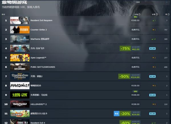 《生化危机9:安魂曲》 登上Steam全球热销榜榜首