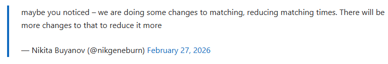 好评搜打撤名作《逃离塔科夫》其中一项游戏问题备受诟病,就是玩家队伍的匹配时间过长,不过昨天有大批玩家惊喜的发现匹配时间变快了,开发商Battlestate Games工作室负责人Nikita Buyanov回应称,的确是进行了游戏系统改良,从此告别缓慢匹配的游戏称号。 ·玩家反映现在的《逃离塔科夫》游戏中,根据地图的不同,最快的已经数秒即可加入战斗,比起以前的慢节奏畅快了太多,BattlestateGames工作室负责人Nikita Buyanov回应称,工作室的确是对于匹配系统做出了若干改动,看到成果深感欣慰,今后还会继续努力打造更快的匹配系统。 ·过去本作的匹配时间长到劝退不少玩家,某些冷门地图等待数十分钟也不在少例,如今系统改良后,对本作漫长匹配失望而弃坑的玩家可以回归了。 |