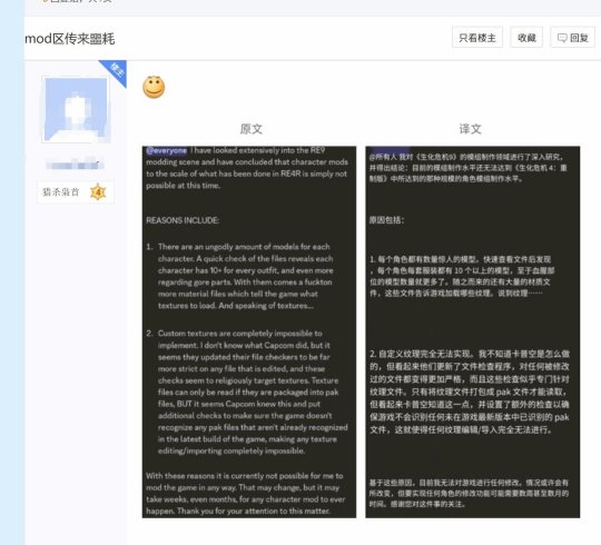 《生化危机9:安魂曲》正式发售后,NexusMods上便出现了许多Mod,主要以功能性修改为主。但没有完整的角色模型替换Mod,仅有少量调整细节的Mod,比如发型颜色替换。 近日有网友发帖称,有Mod作者透露《生化危机9》文件结构更复杂,且卡普空加强了文件检测机制,制作大型角色Mod的难度远超《生化危机4:重制版》。 据Mod作者介绍,每个角色的服装模型包含10个以上模型,涉及破损和血腥效果的模型更是不计其数,配套的材质文件也十分庞大。同时卡普空似乎对文件校验做了强化,对任何修改过的文件都非常敏感,尤其是纹理文件。游戏仅允许加载已打包为pak格式且版本被记录的纹理文件,未记录的文件会被直接忽略,这导致编辑或导入纹理几乎无法实现。 Mod作者目前几乎无法为《生化危机9》制作任何实质性Mod。虽然未来可能有转机,但玩家若想看到角色模型替换Mod,恐怕要等待数周甚至数月。 在Steam社区中也有人对此表示担忧。他们认为《生化危机9》游戏模型可能添加了反Mod保护,并质疑为何要限制玩家创作。Mod不仅能提升画质、修复Bug、增强无障碍体验,还能在官方停止更新后延续游戏寿命。限制这些功能,就是在“倒退”。 |