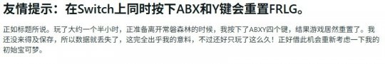宝可梦粉丝们现在终于可以在NS上玩到《宝可梦:火红/绿叶》了。然而仅仅几天时间,就有玩家发现:在游玩过程中同时按下NS的四个正面按键,游戏会直接退回标题画面。这直接导致了没有即使保存的玩家白玩几个小时。 若你在玩火红》或《叶绿》时同时按下A、B、X、Y键,游戏就会重置。没有任何警告,没有弹出确认窗口,游戏就这么重开了。国外主播在直播时便身体会了这一点,上周日她在练级时因为按键操作过猛,痛失了90分钟的游戏进度。 而在reddit上,不少玩家都因这个按键重置机制吃了亏,有人损失的时间远超90分钟。有位用户声称自己五个小时没存档,结果无意间同时按下了四个按键,完全没意识到即将失去什么。 这么看来,这个奇特的功能让首发玩家苦不堪言。不过,对于喜欢刷闪的玩家却是个相当实用的功能,就是千万记得要即使存档,不然几个小时的心血就白费了! |