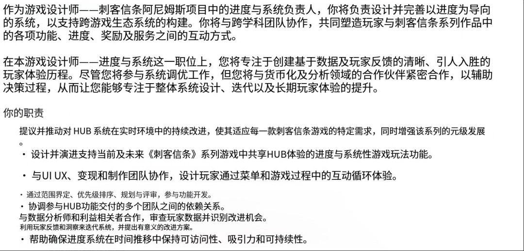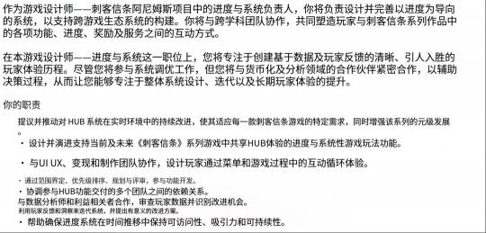 在近20年的发展历程中,刺客信条系列经历了显著演变。这款经典动作游戏系列已转型为规模宏大的rpg游戏,并越来越多地加入联动活动与微交易等服务型游戏元素。随着AnimusHub平台的推出,这种服务型模式愈发凸显。最近曝光的一则招聘信息表明,深化此类功能将成为开发团队未来的工作重心。 负责开发《刺客信条:影》的育碧魁北克工作室,目前正在为整个系列招募系统与进度游戏设计师。职位描述中强调,应聘者需要能在持续更新的游戏环境中构建玩家成长体系。招聘文案还明确提及将与货币化部门紧密协作,这凸显了该方向在未来系列发展中的重要地位。 任职要求部分进一步印证了这些规划。候选人需要理解玩家心理,具备通过长效系统维持用户粘性的经验,同时必须拥有游戏行业在线环境或实时服务项目的开发经历。 虽然该岗位聚焦于Animus Hub平台,但其职责范围将覆盖整个刺客信条系列。这个中枢平台将成为系列未来作品的核心载体。 |