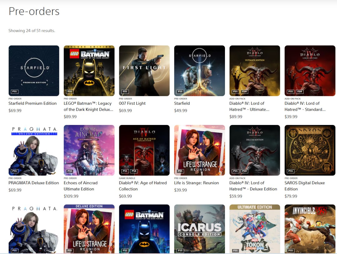 B社太空RPG《星空》在PC和Xbox发售两年半之后,终于要在4月7日登陆索尼PS5平台。延续了Xbox第一方游戏在PlayStation上大卖的趋势,在开启预购短短几天后,《星空》PS5版本也很快制霸了美国PlayStation商店预购排行榜。 截至发稿时,售价70美元的《星空》豪华版稳居榜首,而基础版则位列第四。目前的排名已经超过了《识质存在》、《007:初露锋芒》、《奇异人生:重聚》、《暗黑破坏神4:憎恨之心》。 然而,排在《星空》之后最令人惊讶的游戏是即将推出的PS5独占游戏《Saros》,该游戏由Housemarque开发。《Saros》这款动作游戏即将于4月30日推出,和《星空》是同一个月。但《Saros》目前在预购榜上仅排名第12位,甚至未能进入前十。 不管怎么说,《星空》在PS5上的开局表现强劲,并且在英国PS商店的预购榜上也名列前茅。Bethesda承诺将在未来几年持续支持这款游戏,而且全新大型DLC“地球舰队(Terran Armada)”也正在开发中。 因此,《星空》很有可能超越《极限竞速:地平线5》,成为PS5上最畅销的Xbox第一方游戏。 |