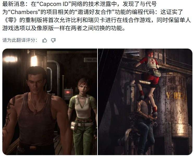 具体来说,在一个代号为“Chambers”的项目中,发现了一个名为“邀请好友进行合作游戏”的功能。Chambers是《生化危机0》主角瑞贝卡·钱伯斯的姓氏。
