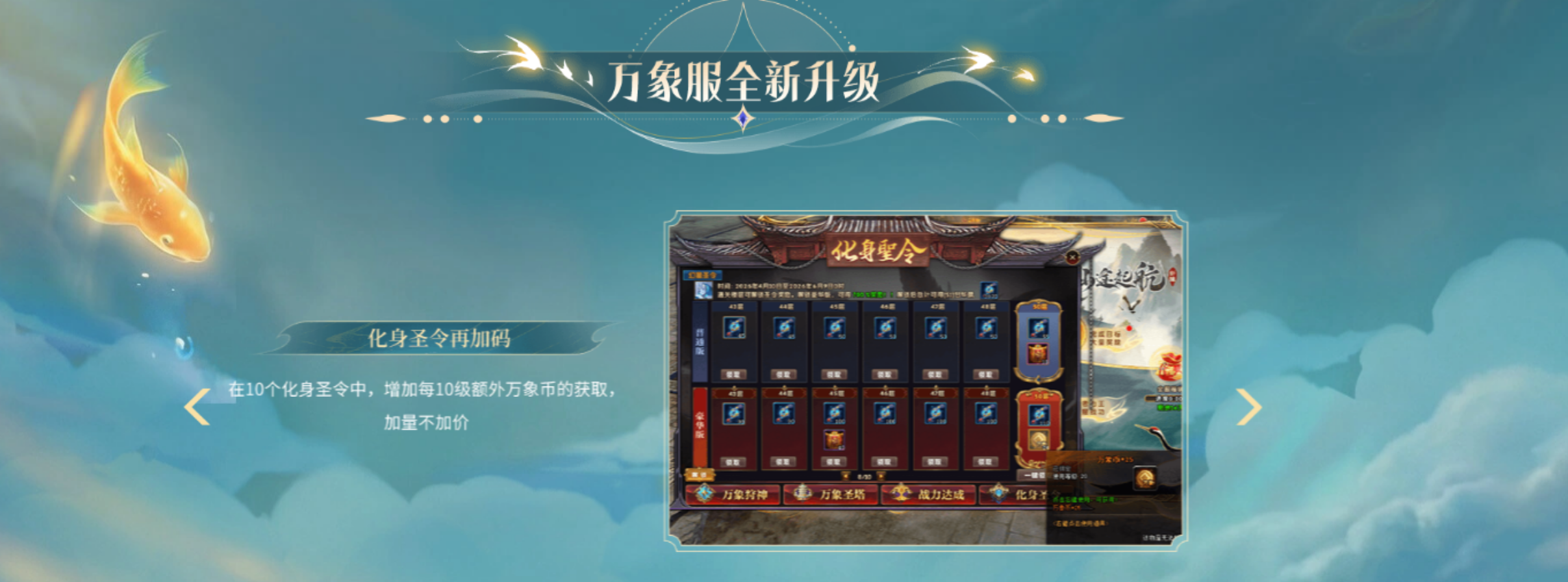 2026年4月10日,《轩辕传奇》端游开启新万象服——万象4服:青丘月满与万象5服:句芒司春。全新玩法升级待体验,返利活动与回流活动同步上线:圣体万象定制再优化,化身圣令再加码,任意充值即可瓜分百万万象币;10万返利绑金与邀友回归奖励等待天命者获取,回归玩家也将迎来专属回归礼。现预约已开启,特邀天命者们前来预约,于山海回归,看万象再启。 一、万象新服预约开启:聚迎春风起,预约领万象币 4月10日10:00,万象4服:青丘月满与万象5服:句芒司春正式上线。4月3日至4月10日为预约期,预约期内,新服预约人数每达标一个档位即可解锁预约奖励,预约奖励可叠加领取,最高可领2000万象币! 二、累计活跃领绑金:最高领10万绑金 4月10日至5月24日期间,累计活跃到一定数值,可领取相应数量的绑定金,最高可领到10万绑金。需要注意的是,累计活跃奖励仅限万象专区的青丘月满服和句芒司春服的角色领取,且单QQ号限领一次,一旦领取无法更改角色。因此,需玩家确认角色、区服信息无误后,再行领取。 三、回流活动开启:邀友回归有奖励,回归者更揽好礼 4月10日至5月24日期间,活跃玩家分享召唤码邀请好友回归(每个召唤码仅可使用1次,活跃玩家最多可有2个被使用的召唤码;回归玩家仅可绑定1个召唤码),填写召唤码的好友为回归玩家并与自己同服,且回归好友于万象服开启后绑定角色,拉人回归者即可与回归好友各自获取召回/绑角的绑定金奖励。 回归玩家为账号≥30天未登录的玩家,回归可根据消耗万象币与累充金币档位,领取回归玩家专属道具奖励。 回归玩家与拉人玩家各自完成每日回流任务,可获得积分,对于拉人玩家来说,如召回2名回归玩家,2名回归玩家的万象币消耗数据为相加统计。积分可用来在积分商城换取Q币、万象币、金币等各类货币。 需要注意的是,本次活动仅限万象4服和万象5服参与,单QQ号限领1次奖励,一旦领取无法更改角色,请确认角色、区服信息无误后再领取。此外,逾期奖励也将不可再领取。 四、积分商城开启:回流活动积分,换取Q币与游戏货币 4月10日至5月24日,即回流活动期间,回流积分商城同步开启,完成回流任务,拥有积分的玩家,可根据自己的积分数量去兑换相应的Q币、金币、万象币、圣体币。同时也需天命者注意回流活动时间,超出活动时间(5月24日23:59:59)后再完成任务无法生成积分,也无法进行兑换。 五、万象服全新升级:化身圣令加码,圣体定制优化 4月10日,万象4服:青丘月满与万象5服:句芒司春上线后,化身圣令再加码,10个化身圣令中,增加每10级额外万象币的获取,加量不加价,助力天命者变强! 同时,圣体万象定制再行优化。在万象2.0中,养成到任意一阶,都可以随时进行修罗万象的圣体定制,并且系统会按照当前养成进度来扣除不需要的万象币开销。天命者可以放心进行圣体的养成,不再为卡进度而忧心。 新服开启后,天命者进行任意充值后,便可瓜分百万万象币——除了战力冲刺活动,万象2.0用战力达成系统取代了之前的圣体榜单,从60W战力一直到700W战力,每提升10W战力,皆可获得1000万象币回馈,累计65000万象币,助力天命者循环提升! 《轩辕传奇》全新万象服,回流福利外加全新系统升级,待你来体验!你可以与好友重续同游之谊,互相成就福利,把青丘踏遍,看又一度的春风过轩辕,再将万象共启,与旧友共忆那年初心,也尽情享受无限提升的战力! |