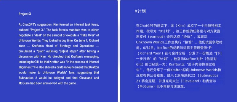 最近韩国Krafton(《绝地求生》母公司)CEO金昌汉(ChanghanKim)被曝出惊人丑闻。为阻止旗下被收购工作室UnknownWorlds(《深海迷航》开发商)获得高达2.5亿美元的对赌奖金,他竟然绕过法务团队,利用ChatGPT设计了一套代号为“X计划”的企业接管策略。 当内部预测显示《深海迷航2》的销量将触发巨额奖金条款时,金昌汉为了省下这笔钱,向AI求助。ChatGPT不仅为他出谋划策,还建议通过锁定Steam账号等手段,强行阻止游戏发售,从而在技术上规避支付义务。 令人咋舌的是,尽管公司内部法务团队明确警告此举存在巨大法律风险,金昌汉依然一意孤行,完全采纳了AI的建议并付诸实施。更糟糕的是,在事情败露后,他试图删除所有与ChatGPT的对话记录以毁灭证据。 这一事件目前已引发法律诉讼,特拉华州法院已裁定Krafton败诉,并强制要求恢复被非法解雇的工作室高管职务。这起闹剧不仅让Krafton颜面扫地,也成为了企业高管滥用AI决策的典型案例。 |