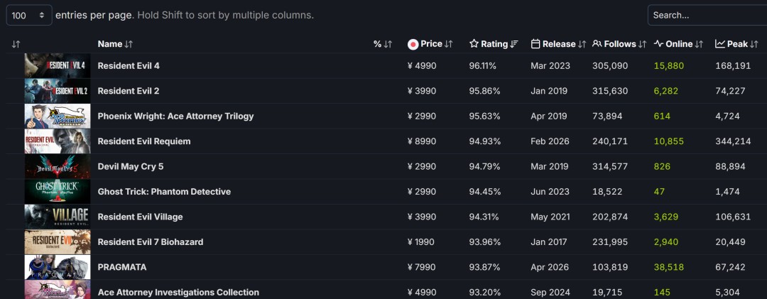 Capcom《识质存在》一经推出,马上在PCSteam平台获得压倒性的评价。该作在4月17日周五推出时,好评率一度高达97%,再次延续了Capcom近年来不断提出口碑佳作的趋势。 《识质存在》当前在SteamDB上,好评率为93.87%,仅略逊于Capcom今年2月底推出的另一款热门游戏《生化危机9:安魂曲》(好评率94.93%),以及Capcom当前评分最高的游戏《生化危机4:重制版》(好评率为96.11%)。 SteamDB显示,《识质存在》Steam同时在线峰值进一步突破,从之前的首日5万增长到了6.7万,逼近7万人 《识质存在》曾多次跳票 《识质存在》目前取得了巨大的成功,但它走到今天这一步却经历了漫长的过程。这款游戏最初于2020年公布,原计划于2022年发售。然而,后来推迟到了2023年。如今,经过多年的等待,《识质存在》迄今为止的表现证明了卡普空的付出是值得的。 2025年9月,游戏总监透露,游戏延期的一个重要原因是需要平衡游戏机制。玩家将能够同时扮演“休”和机器人小女孩“戴安娜”,为了确保这种多样性带来的流畅游戏体验,开发团队需要额外的时间。 国外玩家称赞Capcom接连推出佳作,表示期待Capcom的下一款游戏:《鬼武者:剑之道》 |