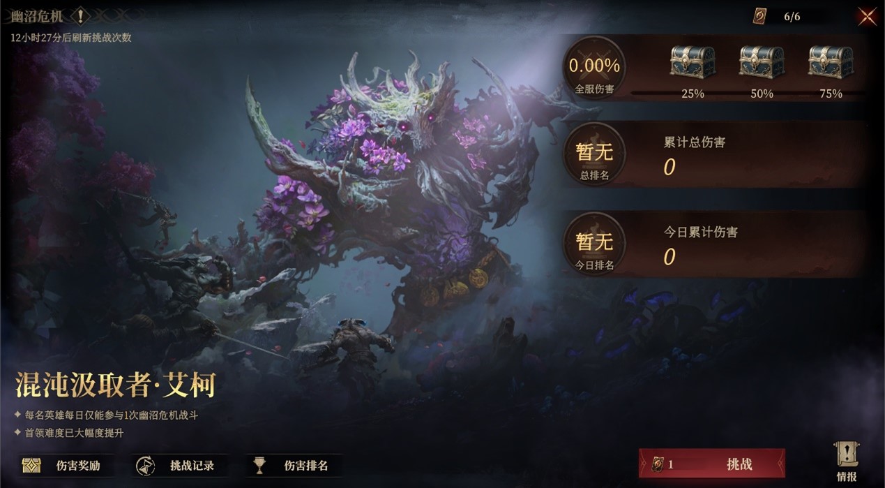 在晓之王庭与暮之王庭那片古老而神秘的交界之地,一股强大且未知的势力正虎视眈眈。随着妖精原野长久以来的平静被无情打破,一场席卷大陆的新纷争已然拉开帷幕。各位勇敢的旅者,备受瞩目的S6赛季异界探索玩法“幽沼危机”即将震撼开启。为了让大家在危机四伏的沼泽中抢占先机,在此特为您呈上详尽的情报与战利品资讯,助力每一位旅者在即将到来的决战中大放异彩。 本次“幽沼危机”活动中处于第一批服务器旅者,异界探索的大门将于四月开启。其他服务器的旅者,则会在所在服务器开服达第五十三天时解锁资格。玩法开启后将率先进入为期两天的试玩阶段,真正的“幽沼危机”正式阶段会在开服天数达到第五十四天全面爆发。在这场史诗危机中,全服旅者将共同面对空前强大的敌人——混沌汲取者·艾柯。 正式阶段开启后,旅者每日可向首领发起六次挑战。但请格外注意,每位英雄每日仅可出战一次,这意味着大家必须着重培养并合理搭配出多套战斗阵容。为帮助旅者更好地适应多阵容作战,挑战开启的第一天、第二天及首领强度进阶后的第一天均被设为试玩阶段。此时大家可毫无顾忌地自由尝试阵容搭配,虽然成绩不会上榜且无档位奖励,但心仪的队伍能直接保存至编队备用。更关键的是,若在试玩阶段达到特定的伤害档位,正式关卡开启后即可直接使用便捷的托管战斗功能,大幅减轻日常的操作负担。 与巨大危机相伴而生的是令人心动的高额回报。每次挑战后,系统将基于伤害评级精准结算探索度,并发放相应的大师残卷与亲和溶剂。活动还将对全服旅者对首领造成的每日单次伤害与累计总伤害进行严格排行,依名次发放时砂回响、大师卷轴、龙髓石、荣誉勋章、日芒石骰子及造物精粹等丰厚大奖。这不仅是个人的历练,更是一场全服同心协力的讨伐战。首领血量由全服共同削减,当全服累计伤害进度分别达百分之二十五、五十、七十五及一百时,所有玩家皆可解锁全服共享的亲和溶剂与大师卷轴里程碑大奖。 随着战局深入,危险将愈演愈烈。首领将于服务器开服第五十九天清晨五点彻底狂暴,进入强化状态,技能机制与破坏力全方位提升。旅者们届时务必在情报界面仔细查看首领进阶后的技能详情,及时调整战术策略。直至开服第六十四天清晨五点,本期异界探索将正式关闭,届时会全面结算排名并分发最终的荣誉奖励。异界迷雾已然弥漫,幽沼深处正传来震耳欲聋的咆哮。各位旅者,准备好迎接异界探索的挑战,在这场生存与荣耀的考验中谱写属于你们的壮丽篇章了吗? |