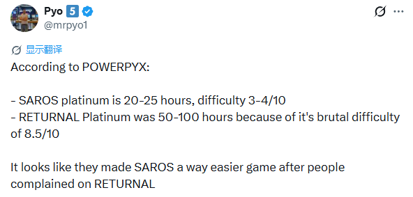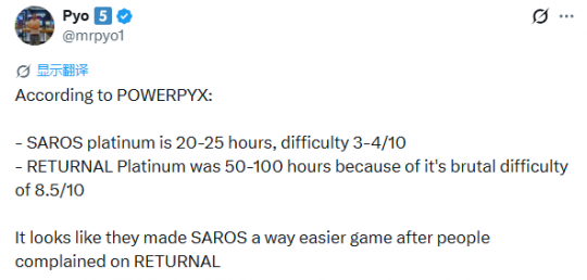 近日PowerPyx数据网站显示,《沙罗周期》白金通关大概需要20-25小时,而游戏难度测评玩家体验下来也不难,难度水平在3-4/10。