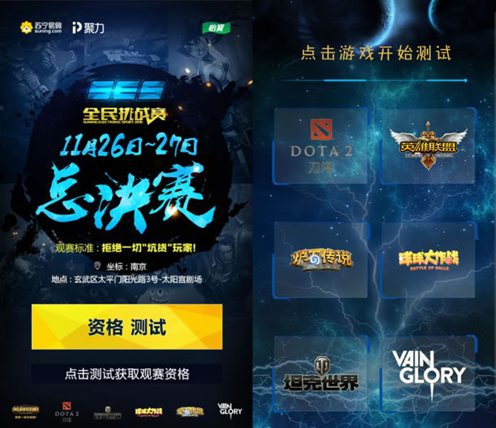苏宁聚力SES全民挑战赛官方H5测试游戏上线!