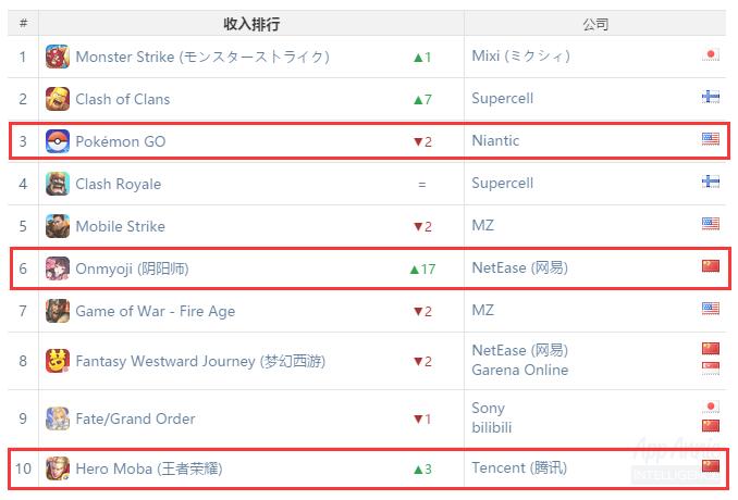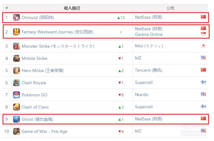 AppAnnie十月手游报告:网易凭借阴阳师登顶全球收入榜