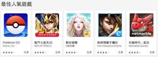 《Pokemon GO》《圣斗士星矢3D》《创世破晓》《剑侠情缘手机版》《石器时代:起源》