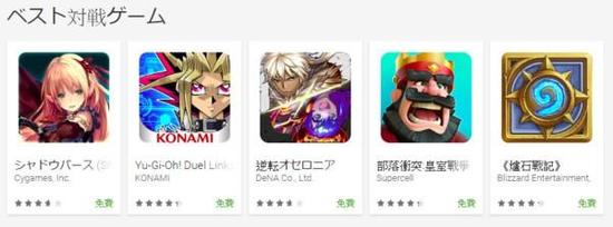 《影之诗》《游戏王:决斗连线》《逆转奥赛罗尼亚》《部落冲突:皇室战争》《炉石传说》