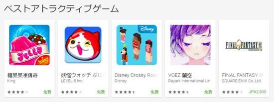 《糖果粉碎苏打传奇》《妖怪手表PuniPuni》《迪士尼天天过马路》《兰空VOEZ》《最终幻想9》