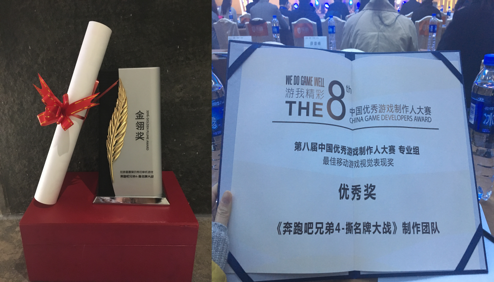 2016年12月28日,备受瞩目第十一届金翎奖和第八届中国优秀游戏制作人大赛(CGDA)同时在厦门帝元维多利亚大酒店举办,经过数月的激烈角逐,投票结果最终揭晓,由华夏乐游研发的《奔跑吧兄弟4-撕名牌大战》分别斩获金翎奖“玩家最喜爱的移动单机游戏”和CGDA“最佳移动游戏视觉表现”两项大奖。 《奔跑吧兄弟4-撕名牌大战》 由华夏乐游研发制作、百度游戏IP授权、咪咕互娱独代发行的跑男综艺官方手游《奔跑吧兄弟4-撕名牌大战》一直是单机手游热门产品。《奔跑吧兄弟4-撕名牌大战》作为综艺节目官方授权的手游,继承了“跑男”综艺节目的优良血统,创新了游戏内容和玩法,深受广大玩家喜爱,总流水已突破1亿人民币。 金翎奖创办于2005年,由ChinaJoy主办方汉威公司主办,是国内游戏产业最为权威的评选活动,一直以来,以其客观性和公正性获得了全行业的广泛认同。以“汇聚玩家所爱”为创办宗旨,金翎奖被誉为游戏界的“奥斯卡”,堪称最能体现广大玩家意志的“中国游戏排行榜”。 CGDA由ChinaJoy主办方上海汉威信恒展览有限公司主办,移动游戏企业家联盟(MGEA)与中国VR/AR娱乐产业联盟(VREIA)联合主办,第1游戏协办的中国游戏产业重要活动,也是国内唯一针对游戏研发领域的评选。自2009年起已连续举办多届,涵盖了程序、美术、策划、动画、音乐音效等游戏研发的重要领域,并致力于推动中国游戏人才储备、选拔和表彰优秀游戏制作人以及团队。 |