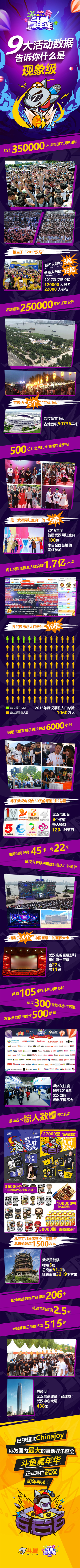 十里江滩,三日狂欢, 可还记得武汉江滩上那场激动人心的斗鱼嘉年华? 端午假期虽已远去,但斗鱼嘉年华上的精彩瞬间已定格成珍贵的回忆。 独占25万平米江滩公园,搭建了武汉有史以来最大的户外背屏。 35万人次水友现场围观,1.7亿人次粉丝线上观看,直播总时长达到6000小时以上。 甚至斗鱼嘉年华期间毒辣的太阳,都显得那般有爱。 2017斗鱼嘉年华完美谢幕,已成为国内最大的互动娱乐盛会。 还有许多背后的细节和故事,一起来见证直播领域新标杆的诞生吧! |