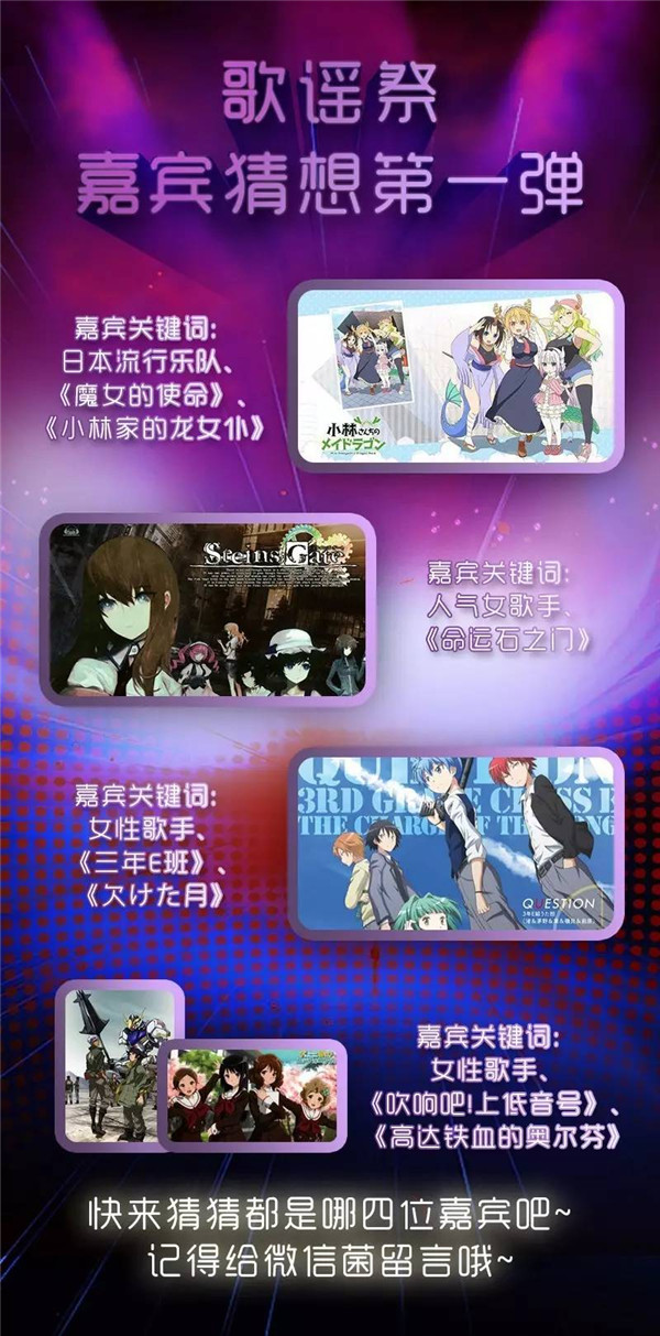 奉歌为媒,献谣为礼。 万众期待,2017首届#ChinaJoyLive# 音乐嘉年华之#ChinaJoyLive歌谣祭# 晚场演唱会将于7月29日登陆魔都,音乐盛宴即将上演!期待新一波神秘嘉宾么?更多资讯敬请关注微信菌及@CJCosplay嘉年华,更多精彩,抢先知道! 在正式公布嘉宾前,微信菌和大家来做个小游戏~看关键字猜嘉宾!!猜中的小伙伴将有机会获得ChinaJoy提供的神秘礼品! 期待第二波神秘嘉宾么?更多资讯敬请关注微信菌及新浪微博@CJCosplay嘉年华,更多精彩,抢先知道! 关于2017 ChinaJoy门票购买方式及流程(纸质票/电子票),详情可点击以下链接——手快有,手慢无! 支付宝确认成为ChinaJoy唯一电子票渠道!蚂蚁会员本月购票立享8折优惠 门票开卖!大麦网正式成为2017 ChinaJoy官方纸质票销售总代理 欲了解更多详情,请访问ChinaJoy官方网站,也可搜索微信公众订阅号“ChinaJoy”或扫描以下二维码关注ChinaJoy官方微信公号。 |