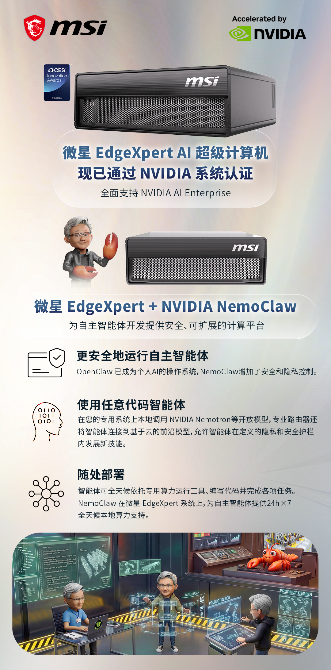 微星科技 MSI 宣布,旗下新世代 AI 平台 MSI EdgeXpert 已正式成为英伟达(NVIDIA) NVIDIA认证系统(NVIDIA-Certified Systems)。这项认证不仅代表该硬件通过英伟达(NVIDIA)工程师针对效能、功能性、扩展性与安全性的严格测试,更确保其能全面纳入NVIDIA AI Enterprise (NVAIE) 软件平台的支援范围,协助企业更快速、更稳定地导入生成式 AI、AI Agents 与高效能边缘 AI 工作负载 。从认证到落地,微星正把企业级生成式 AI 能力“装进”个人工作站。 继 MSI EdgeXpert 正式通过英伟达认证系统测试、全面纳入 NVIDIA AI Enterprise 软件平台支持之后,微星于4月10日同步于京东平台启动了“春种 AI 算力,秋收智能硕果”主题促销活动。“企业级认证产品 + 消费级促销玩法”——面向开发者、技术创业团队与 AI 爱好者,微星试图回答一个长期困扰市场的问题:个人桌面 AI 服务器,到底能不能既强大、又省心、还不烧 token? 认证背书:不是“能用”,而是“企业级可信” NVIDIA 认证系统并非一张简单的兼容贴纸。MSI EdgeXpert 在测试中通过了 TensorFlow/PyTorch 深度学习训练、TensorRT/Triton 高吞吐推理、系统级安全与硬件密钥管理等严格评估。这意味着,它不仅是硬件上搭载了NVIDIA GB10 Grace Blackwell Superchip 的算力机器,更是一个被验证可稳定承载NVIDIA AI Enterprise软件平台的边缘 AI 节点。 对于企业而言,这项认证的价值直白而有力:从概念验证(PoC)到商业化部署,不再需要反复调试驱动、框架与算子兼容性。对于个人开发者或小型团队,认证则意味着“开箱即用”的确定性——这在生成式 AI 和 AI Agent 开发中,往往能节省数周的环境配置时间。 春促亮点:工程师“带飞”,告别 token 焦虑 如果说认证解决的是“能不能跑”的问题,那么微星本次春促(4月10日–4月30日)则直接回应了“好不好用、贵不贵”的现实痛点。 最引人注意的是“微星工程师保姆式手把手教学”——从 Qwen3.5/GPT 主流大模型本地部署,到 WebUI/ComfyUI 可视化工具一键配置,甚至OpenClaw 小龙虾专属部署指导 + 飞书机器人无缝接入。这种“工程师带飞”服务在同类产品中极为罕见,它直接降低了本地大模型的使用门槛,让零基础小白也能绕开复杂的命令行和依赖冲突。 不耗 token、零调用成本、数据更安全——本地部署的核心优势被清晰放大。对于那些每月 API 账单不菲、又担心数据外泄的团队来说,MSI EdgeXpert 提供了一个“省钱省心”的替代方案:一次性硬件投入,之后自由运行本地大模型。 专属豪礼:算力叠加,双机串联直指超大模型 促销活动中的硬件福利同样直击算力敏感型用户: 每购买 2 台 EdgeXpert,赠送 QSFP112 高速线缆,支持双机串联后内存扩展至 256GB,可流畅推理4050 亿参数的超大模型。 下单评价晒单返 100 元 E 卡,活动截止 5 月 10 日前通过微信公众号“微星 GAMING”回传表单。 此外,3 年官方质保进一步强化了这台“个人桌面 AI 服务器”的长期使用信心——原厂护航,稳定耐用,售后无忧。 通过 NVIDIA 认证提供“专业可信”的底座,再通过工程师陪跑、零 token 成本、双机串联超大模型等促销卖点,微星正在将企业级 AI 服务器“消费化”。对于那些希望本地运行 AI Agent 或生成式 AI 应用、却一直被云成本或技术门槛挡在门外的用户来说,这确实是一个值得关注的窗口期。如果你正被 token 费用困扰、又想拥有一套真正属于自己的本地大模型环境,不妨趁春促认真看一眼——毕竟“工程师带飞”不是每天都有。 附:NVIDIA AI Enterprise 90 天免费试用(社区支持)同步开放申请 MSI EdgeXpert服务器春促活动详情请点击:官方网站了解 |