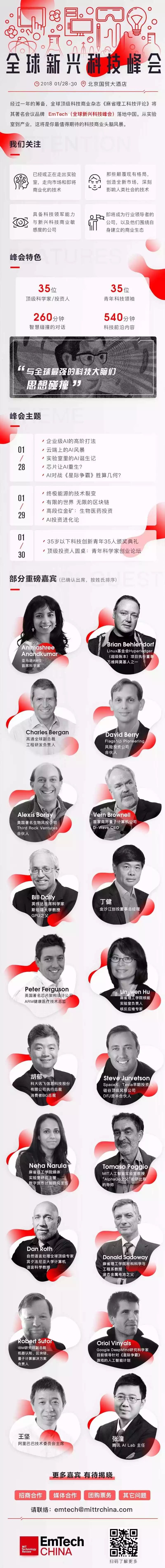 他将作为演讲嘉宾出席 2018 年 1 月 28-30 日举办的 EmTech China 全球新兴科技峰会,这也是由《麻省理工科技评论》在全球举办了超过 18 年的 EmTech 新兴科技峰会首次落地中国。