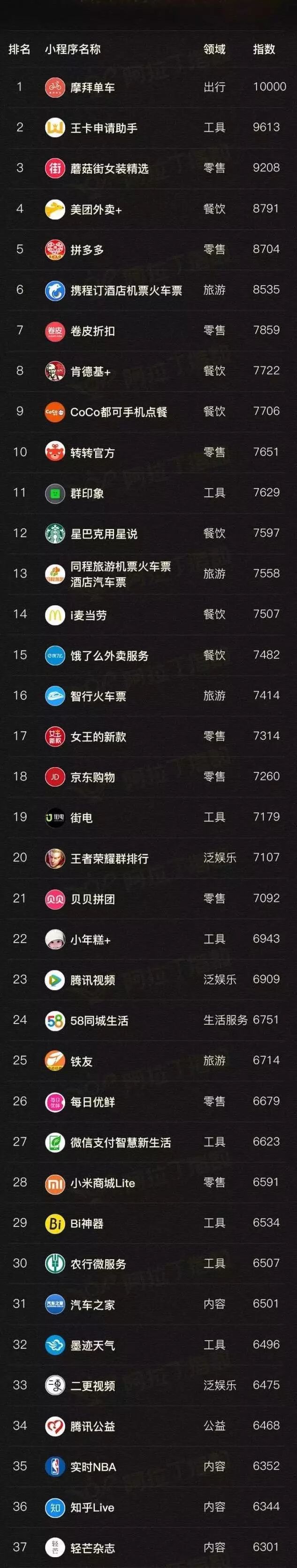 根据号称是“首家小程序统计平台”阿拉丁在8月份发布的“小程序报告”,目前生态中最成功的小程序,集中具有“生活化”“工具化”“零售”三个特性,并且普遍缺乏“娱乐性”。