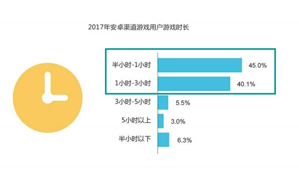 “争夺用户时间”是在用户增量触底的情况下,各大厂商不得不去做的事情。 数据显示,85.1%的用户游戏时长在0.5-3小时之间,24小时中拿出3小时用于游戏娱乐可以说是相当奢侈了;且65.1%的安卓渠道游戏用户同时玩3款以下的游戏。也就是说绝大部分的时间落到了少数游戏手里。