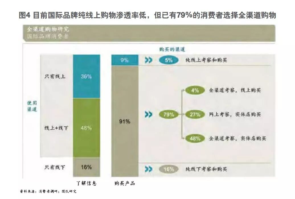 趋势六: 渠道合一化。尽管最终购买仍然绝大多数在线下实现,消费者决策旅程已经全渠道化。根据麦肯锡2017年国际品牌消费者调研,只有16%的消费者在线下完成了解、考察和购买的全部过程,而84%的消费者在整个购物过程中受到线上的影响。此外,国际品牌消费者调研表明,60%的消费者表示未来愿意尝试网上购买国际品牌,但产品真伪和购物体验仍存在痛点。