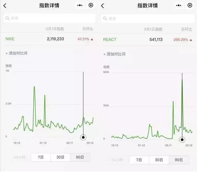 从耐克的曝光量和相关产品的销售量来看,这两千万应该是很值的。耐克在植入“跳一跳”小游戏后被媒体大号纷纷报道,并登上知乎话题榜单,3月1日当天耐克和REACT在微信指数上分别有42.51%和266.29%的指数增长。