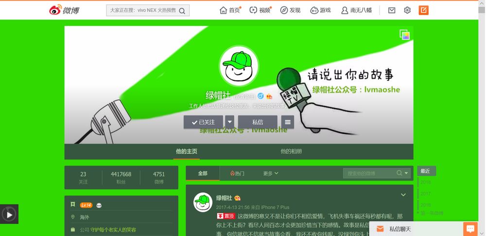 绿帽社微博头图,一片绿油油