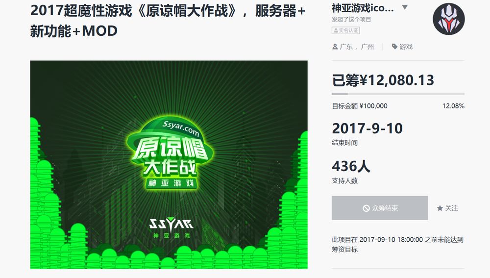 《原谅帽大作战》官方发起的众筹活动截图