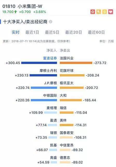 (7月11日的小米股票交易情况,富途用户为最大买方)