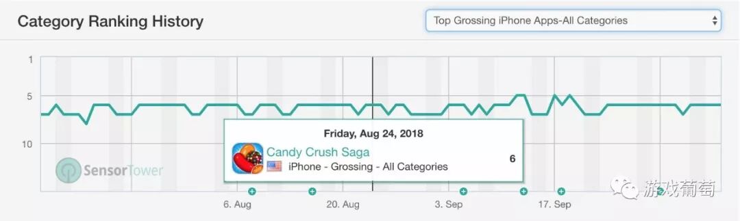 相同时间里,《糖果传奇》在美国 iPhone 应用畅销榜中也从未跌出过前十。