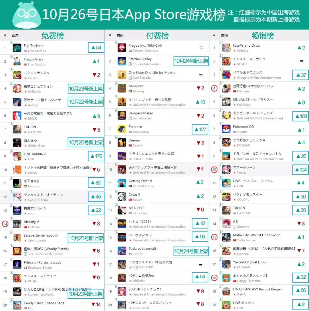 《碧蓝航线》在日本App Store游戏畅销榜的排名25号还在136位,但是26号却冲上了Top20!
