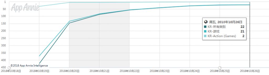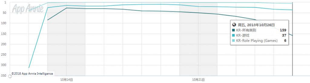 我们还是先从 韩国市场 开始: (由于韩国市场的手机平台构成极不平衡,所以我们取用的数据是在当地占据绝对优势的GooglePlay市场数据。)