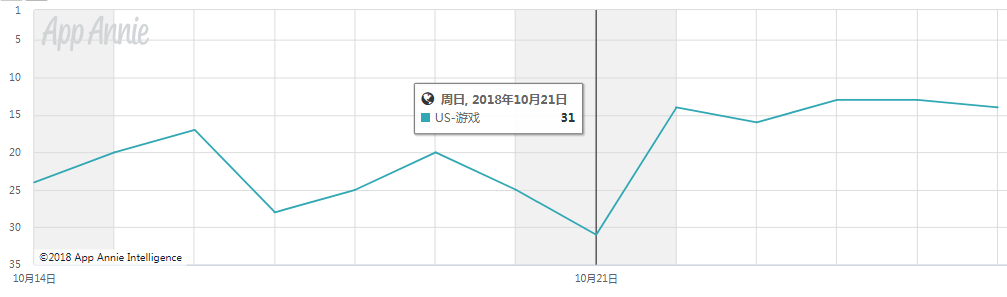 《王国纪元》最近两周在美国App Store游戏畅销榜排名变化