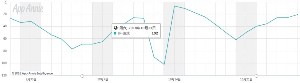 再来看看本期的 日本市场: 这仍然是 变化最大 的市场,而且新上市游戏也经常能在这里打出足够抢眼的表现。