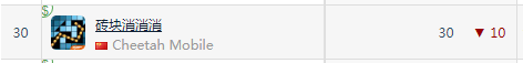 《砖块消消消》目前在美国App Store游戏免费榜排名已经下跌至第30