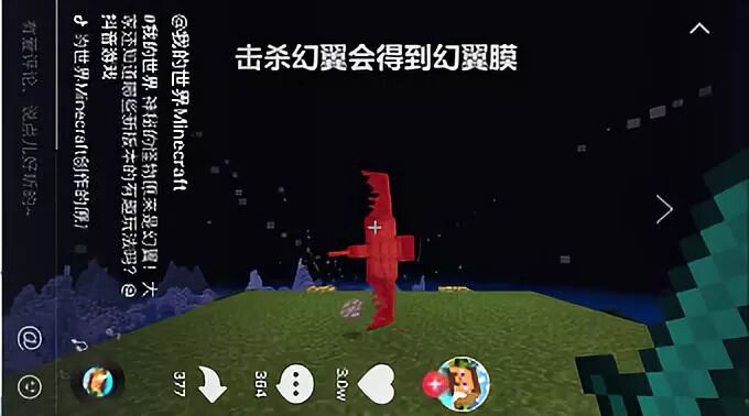 为了不断调动玩家的兴趣,《我的世界》一直非常重视玩法的更新,有趣的玩法在抖音上同样也能吸引到关注。此前针对幻翼新生物的更新,《我的世界》官方抖音先是讲了个愚公移山过程中被神秘怪物袭击的小故事,再带出新版本更新的内容,吊足玩家胃口。从玩家中来、到玩家中去,保持持续的输出和内容的优质,从而反哺游戏内生态,形成完善的运营闭环。