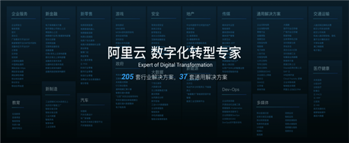 这张是阿里云整个解决方案的地图,大家可以看到,这个解决方案地图包含205套行业的解决方案,包含了37套通用解决方案,基本覆盖了每一个细分行业的业务场景。
