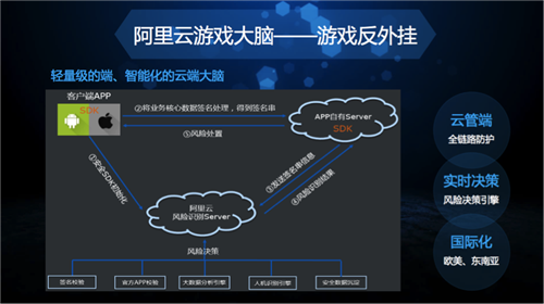 游戏反外挂,也是近两年大家关注较多的攻击防范手段,之前常见的防御方式都是通过应用加壳,代码混淆等基础防御方式,今天的反外挂已经结合云上大数据分析建立完整的防御体系,所有移动端玩家日常行为都会通过云上大数据进行分析,精准识别,通过云上的异常行为发现、自动拦截等保证我们游戏业务的安全性。