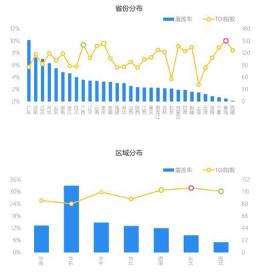 豪杰云集广东省,东北玩家更热血 热血汉子相对集中于广东、河南、江苏、河北和山东等人口大省,其中广东以超过10%的占比居全国首位,相比整体移动互联网人群,热血汉子在青海、贵州和广西的TGI指数较高;热血汉子在华东的比重尽管高但TGI指数低,东北的TGI指数最高。
