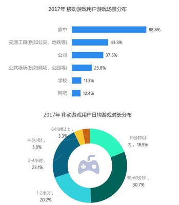 游戏时间碎片化,娱乐场景更多元 游戏时间碎片化,娱乐场景更多元移动游戏作为线上休闲娱乐的一种方式,其随时随地能够适用较多人群的特性,受到大部分用户的青睐,无论是居家、乘车或者身处公司等场景,人们往往会利用闲暇的碎片化时间进行游戏,调查显示超过30%的玩家每天至少花费2小时打游戏。