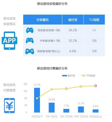 游戏佳人爱包包,购物天性买买买 游戏佳人整体比较偏好餐饮、医疗、零售卖场等消费,注重吃穿以及健康,相比移动互联网人群,游戏佳人在箱包的TGI指数超过200,说明她们对箱包情有独钟;在生活消费的移动应用上,她们偏好手机淘宝、支付宝、美团、拼多多和京东等App。