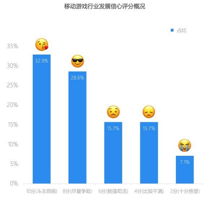 游戏参与者勿忘初心,市场仍旧存在机会 移动游戏行业尽管市场竞争越来越激烈,但是成熟的生态环境和健全的法制体系推动着行业进步,移动游戏行业参与者依然看好发展前景,超过6成的移动游戏开发者给予行业至少8分的评价。随着智能移动终端的硬件水平提升,扩展能力增强,以及VR、AR等技术的完善,移动游戏开发者能够不断创新产品玩法和互动模式。所以,移动游戏开发者需要保持游戏研发初心,通过敏锐的市场洞察和高质量的创意,依旧能够在移动游戏行业获得一片天地。