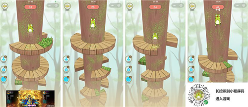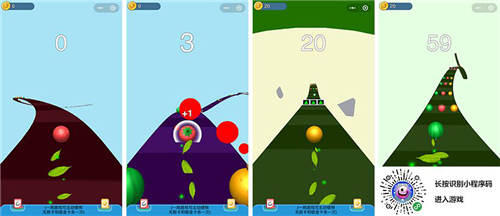 《功夫青蛙》游戏截图 小编简评: 《功夫青蛙》是一款休闲物理跳跃游戏。控制好青蛙下坠的方向,避免碰到危险区,存活时间越久得分越多。自从欢乐球球火了之后,类似游戏小编玩过的就十几款之多,其中不乏有不少美术非常精美且各有特色的产品,比如萌萌下楼、欢乐大冒险、高台球球、天天欢乐球、球球一跳到底等等。因为《功夫青蛙》有小程序码,所以推荐给大家直接识别小程序码体验,其它的游戏可以通过搜索名字体验。 42、球球蹦蹦蹦