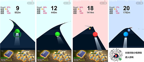 《狂野飞球OL》游戏截图 小编简评: 《狂野飞球OL》是一款避障竞速的小球跑酷游戏,非常有魔性,极其考验玩家的手速与反应能力,并且小球之间的竞速有着赛车般的视觉冲击感。小编在8月份推荐的《球球冲刺》游戏也是属于这一类,其后又相继发现多款这种类似玩法的微信小游戏,一些体验不太好的就不提了,其中《疯狂球球冲冲冲》、《激情球球》、《疯狂的球球正版》也是非常不错的相似玩法的游戏。这里重点推荐《狂野飞球OL》的原因是,该游戏有一些微创新,除了基础的竞速与避障玩法外,不仅把当前小球的速度显示出来,用于提示玩家踏加速带进行加速,还把每次踩加速后的冲刺能量积累起来,当冲刺能量条满了之后,会自动激活一段时间的无敌模式(可以穿透障碍不死),进一步刺激玩家多踩加速带。 9、球球跑酷赛车游戏