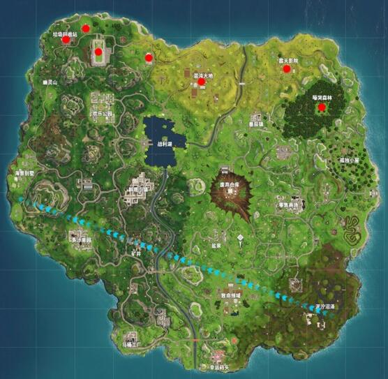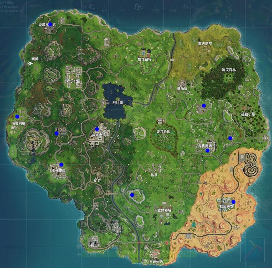 《堡垒之夜》第五赛季第二周的挑战也有一些比较难的任务,比如投篮和寻找宝藏等。下面请看由“南山有墓碑”带来的《堡垒之夜》第五赛季第二周全挑战任务攻略,大家一起来看看吧。 1.搜索战利湖中的宝箱7个,下附宝箱刷新点具体位置及游戏内截图。 注意事项:开启宝箱后正常完成比赛。 2.在5个不同的篮筐中投篮得分,蓝点为地图上各篮球场具体位置。 此任务需要玩家持有第五赛季英雄勋章并达到第11战阶,解锁篮球并装备才可完成。 在仓库姿势一栏中装备篮球 将球投入地图中5个不同的篮球框即可。 注意事项:投篮后正常完成比赛。 3.在单局中搜索7个弹药箱,红点为建议落点(ps:具体还是要看各位的航线)。 注意事项:一局搜索7个弹药箱并正常完成比赛。 4.使用突击步枪对敌人造成1000点伤害。 步枪打不准也没有关系,多排模式中击倒敌人后用步枪打伤害即可。 5.使用狙击步枪淘汰2名敌人。 6.淘汰棕榈天堂中的3名对手。 略 注意事项:正常完成比赛。 7.在绿洲、石头拱门和恐龙之间搜寻,蓝标为具体宝藏位置。 隐藏宝藏 当我们完成了任意两周的所有周任务后,我们可以获得#2号壁纸,它提示我们地图中还有一个隐藏宝藏可以拿,拾取后可以提升一阶战阶。 蓝标为#2号壁纸隐藏宝藏具体位置。 注意事项:拾取后正常完成比赛即可,千万不要乱跑哟! |