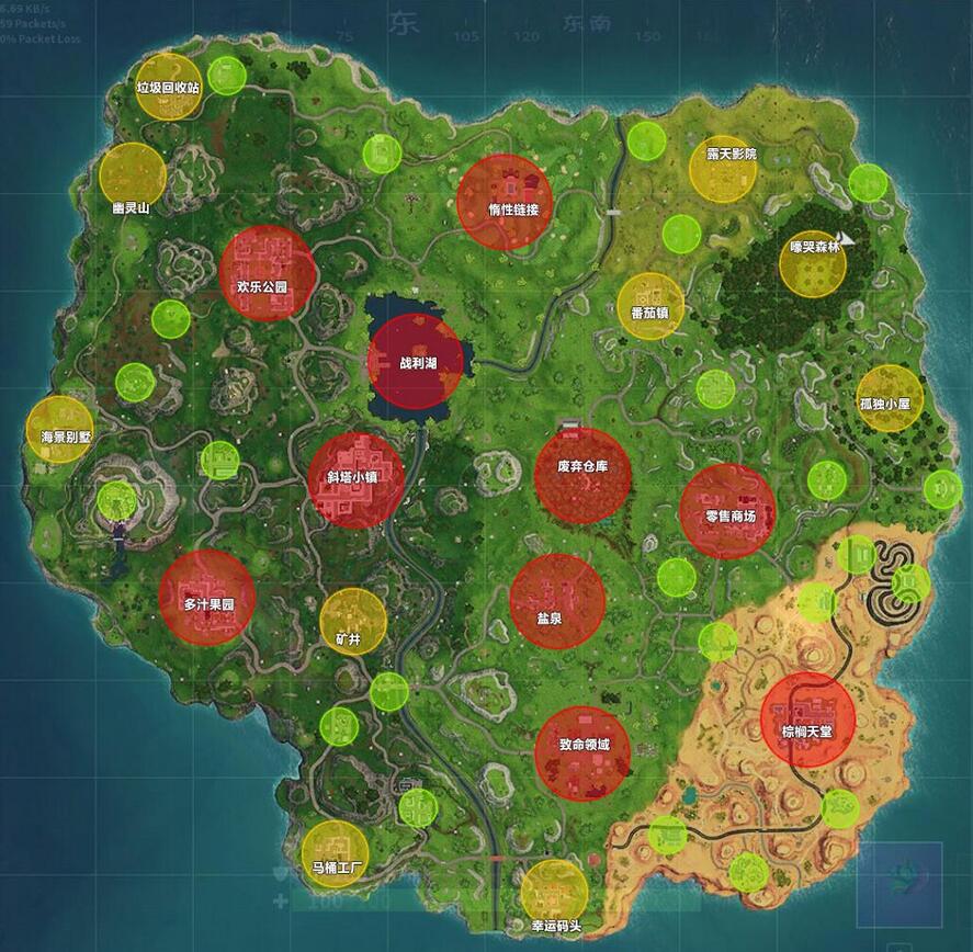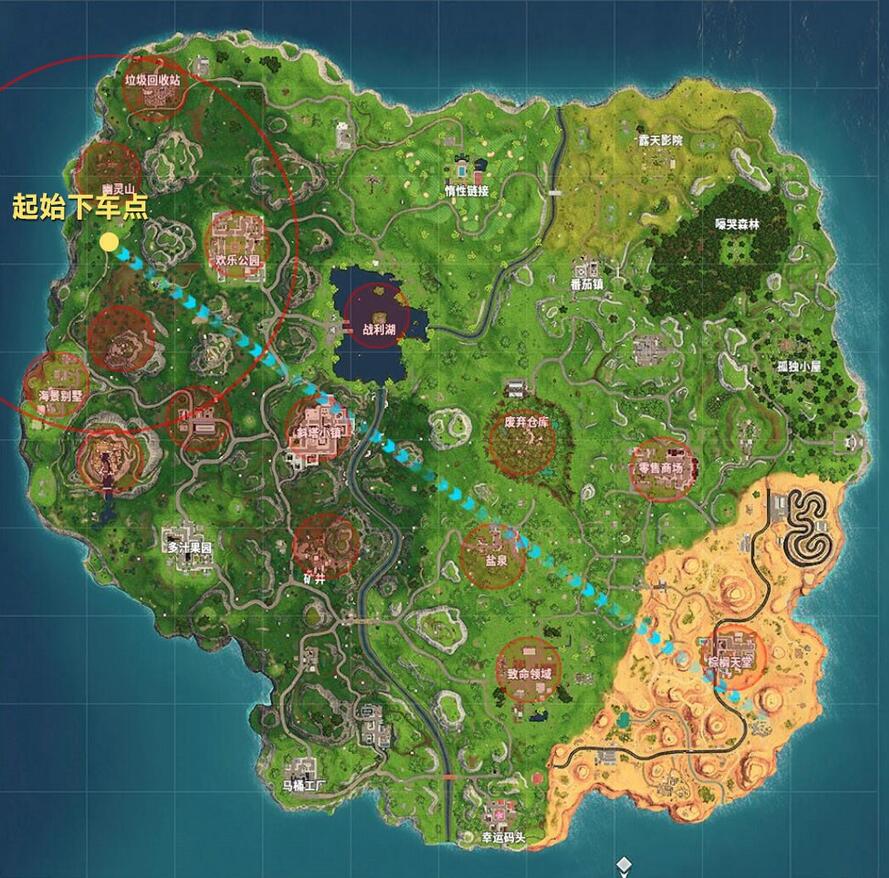 《堡垒之夜》新手跳伞攻略,新手跳伞注意事项。随着大量玩家的涌入,很多新手玩机因为跳伞不对而惨遭淘汰,下面小编为大家带来《堡垒之夜》新手跳伞攻略技巧。 观察巴士路线 在游戏匹配成功以后,会有一段等待巴士起飞的自由活动时间,此时按Tab打开大地图即可看到本次空中巴士的航线。 注意:每一次游戏开局的巴士飞行路线都是不一样的哦! 选择落点 不管空中巴士的飞行路线如何变化,在堡垒中跳伞以后能够飞到地图所有区域。所以根据巴士航线和自己的战斗风格选择一个合适的降落点是至关重要的。新手选择落点的时候,可以避开航线附近和地图中间的热门城区,如斜塔小镇,欢乐公园和零售商场,转向地图边缘较为偏僻的区域,如孤独小屋、海景别墅和幽灵山等。这样可以避免前期就与强敌交锋,过早离开战场。 房区:地图上有名字的地区建筑物更密集,可以迅速收集到足够的物资。当然,敌人也会更多! 野区:地图上没有名字的建筑物通常物资较为稀缺,但较为安全,树林和洼地里还可以找到苹果(加血)和蘑菇(加护盾),如果看到敌人已经先落地了,不妨转头去野区搜搜看。 起始下车点:很多玩家喜欢在第一时间就选择起跳,以获得足够的搜索物资的时间,所以在起始下车点附近会有大量的玩家降落,新手可以选择稍后起跳,避开这些区域。 航线:航线附近的房区和打野点也是热衷于钢枪的玩家喜欢降落的地点,新手玩家要尽量避开这些地点。 标记落点 鼠标点击地图,可以标记位置,在巴士起飞前就可以用标记和队友沟通降落位置,鼠标滚轮可以拉大地图,更灵活的标记到每一栋建筑哦!切记,在多人模式中和队友一起降落在同一个地方,可以大大增加生存机会! 地图上的标点,在游戏开始以后会表现为一个光柱形态,这样就不会飞错方向了。 |