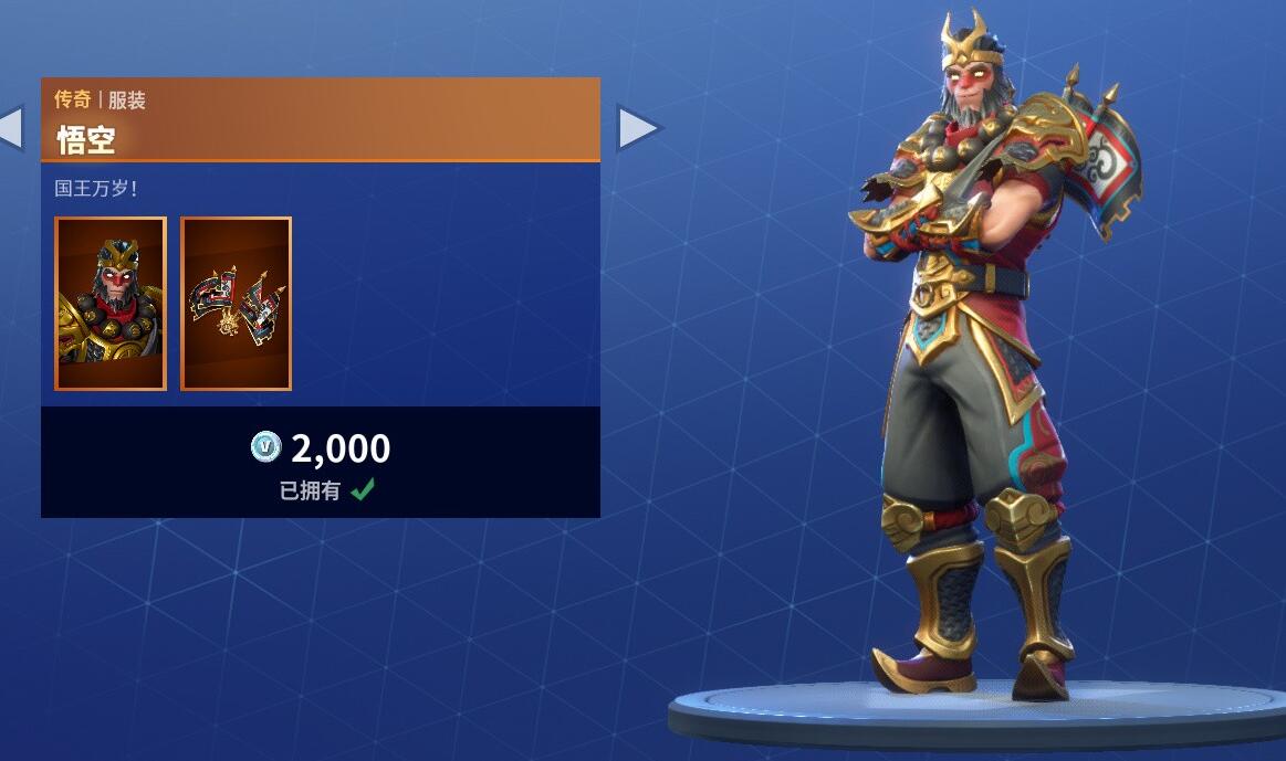 《堡垒之夜》商店7月31日新物品:悟空登场